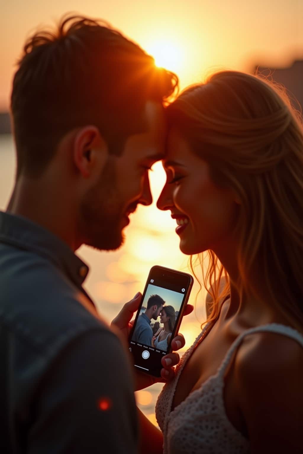 Für romantische Bildkompositionen ist das richtige Licht entscheidend, wobei besonders die goldene Stunde kurz vor Sonnenuntergang zauberhafte, warme Töne erzeugt. Achte bei der Inszenierung auf einen harmonischen Bildaufbau, bei dem sich die Liebenden im goldenen Schnitt befinden und der Hintergrund die Atmosphäre unterstreicht, ohne abzulenken. Mit sanften Bokeh-Effekten und einer offenen Blende schaffst du eine traumhafte Unschärfe im Hintergrund, die den Fokus ganz auf das verliebte Paar lenkt. Experimentiere mit Gegenlicht für atmosphärische Silhouetten oder nutze weiche Lichtquellen wie Kerzen oder Lichterketten, um eine intime Stimmung zu kreieren, die die Verbundenheit des Paares authentisch widerspiegelt.